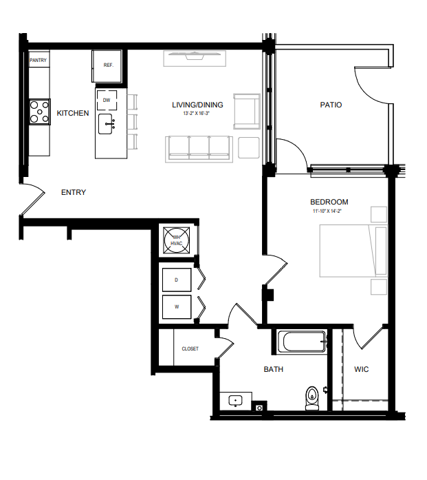 1 Bed, 1 Bath, 593-606 sq ftAvailable Nov 20Model Gallery