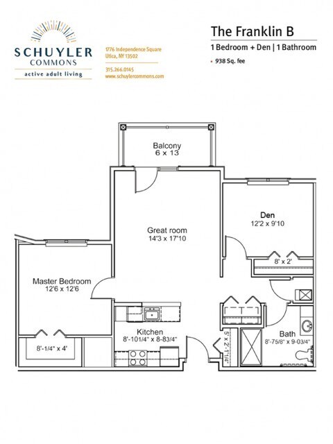Apartment Model: Franklin B2 Bedroom, 1 Bath, 938 sq ftUnavailable![]()