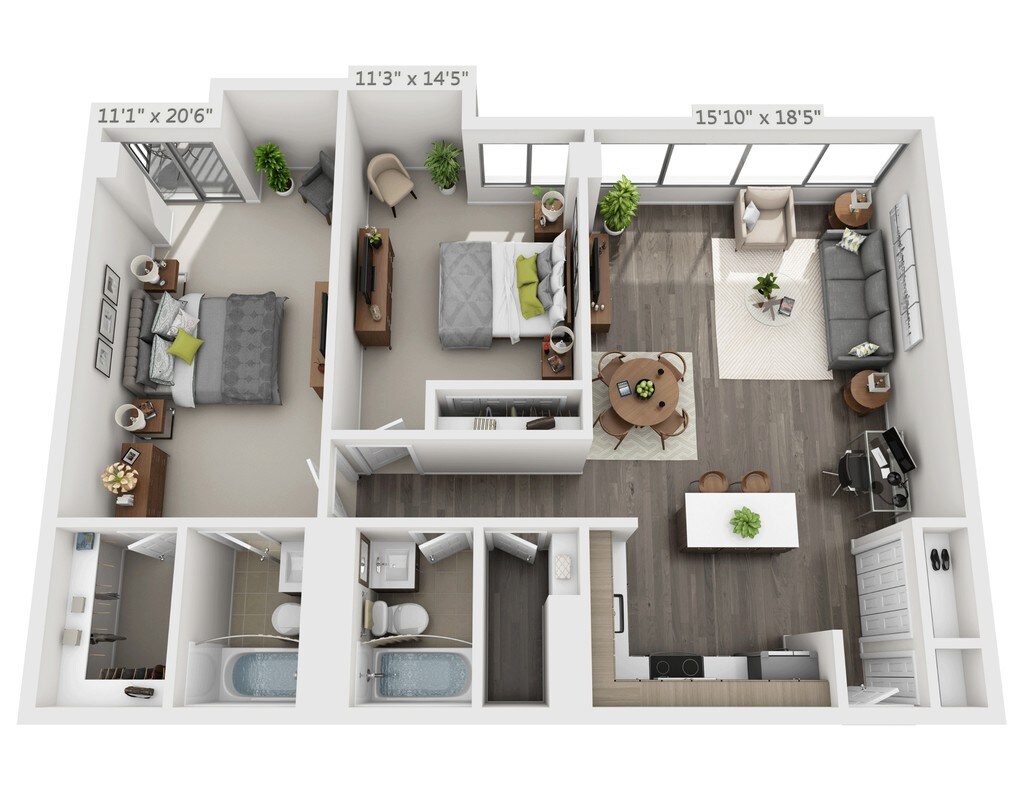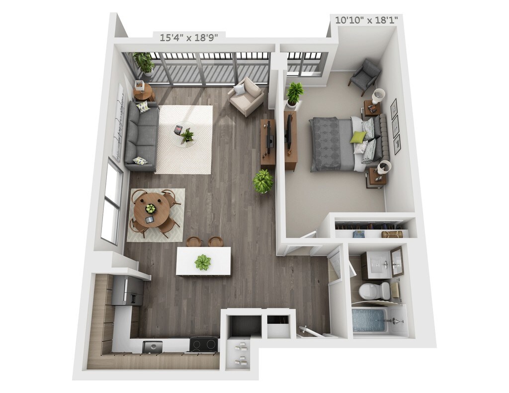 Studio, 1 Bath, 569 sq ftAvailable January 7, 2026Model Gallery
