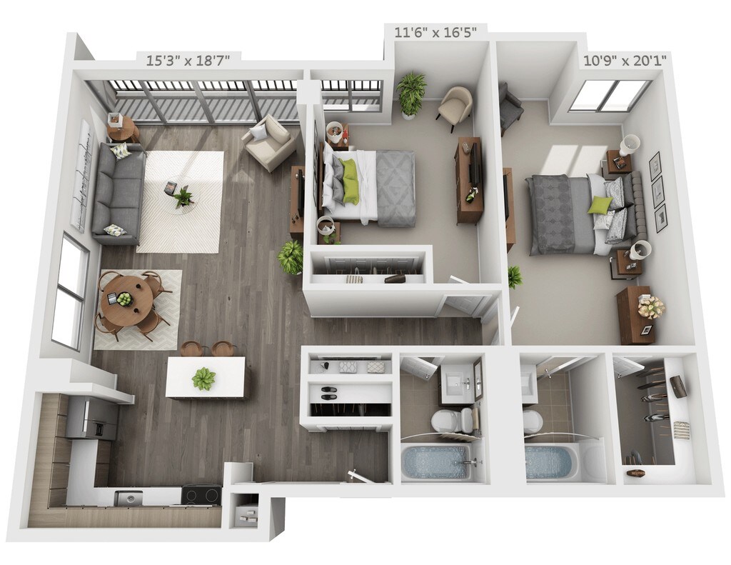 1 Bed, 1 Bath, 624 sq ftAvailable NowModel Gallery