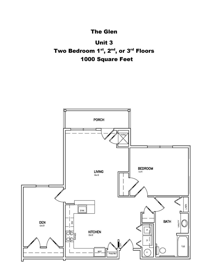 Apartment Model: Glen2 Bedroom, 1 Bath, 1000 sq ftUnavailableGlen - Floorplan 1 The Stockade