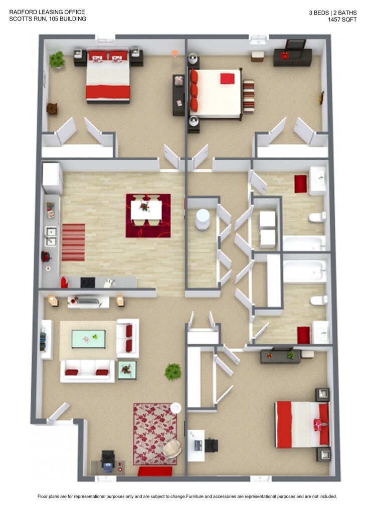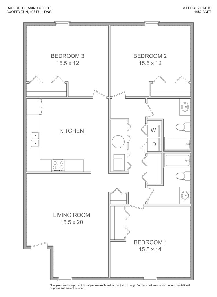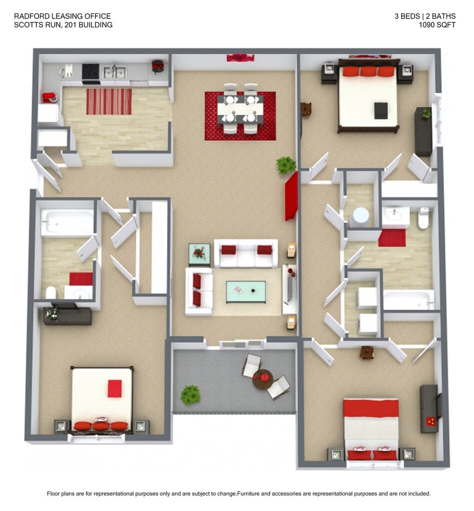 3 Bedrooms at Scott's Run Apartments & Townhomes currently start from $409. Call today for more info!