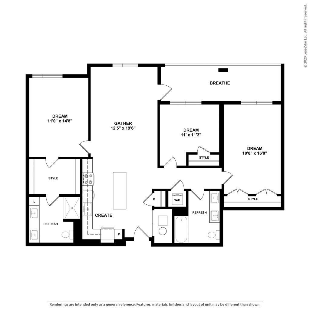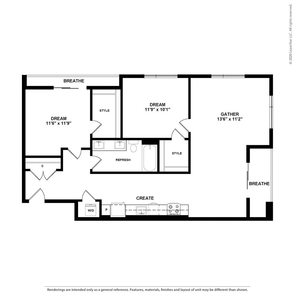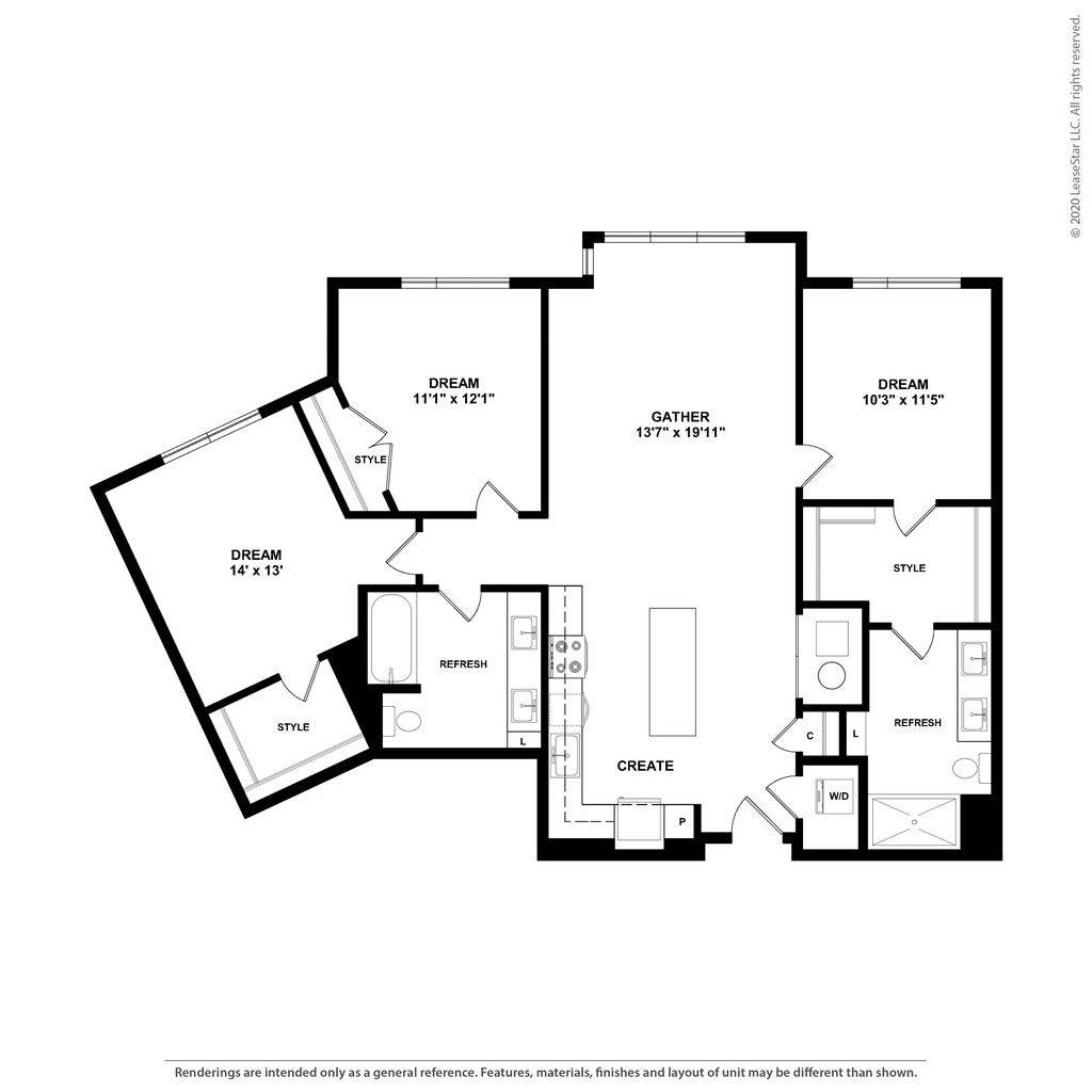 Studio, 1 Bath, 616 sq ftAvailable NowModel Gallery