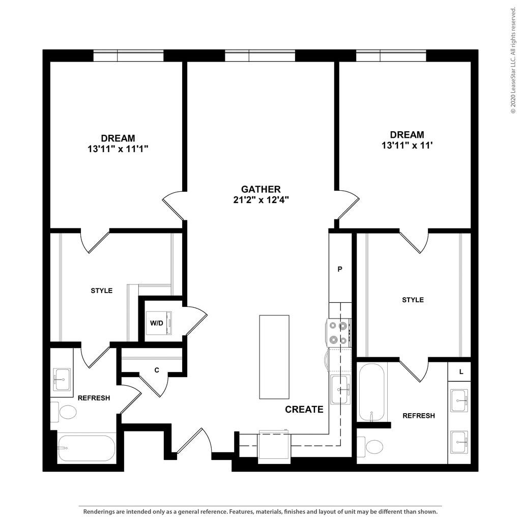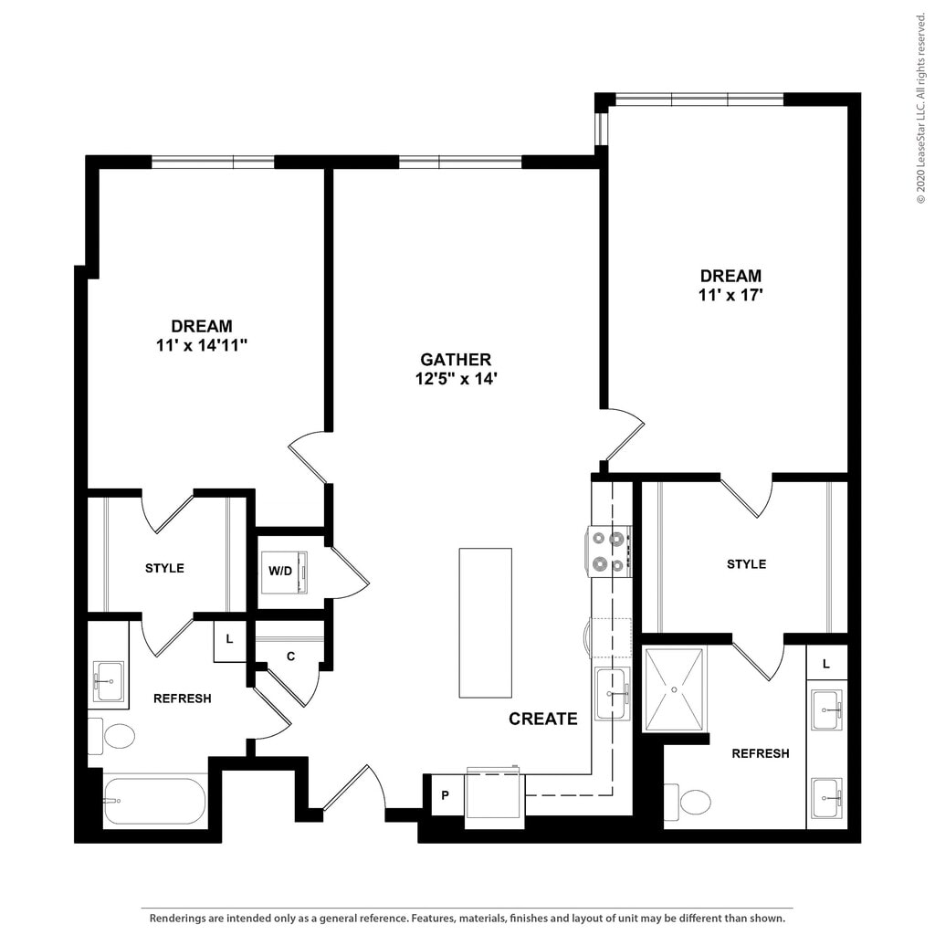 1 Bed, 2 Baths, 953 sq ftAvailable NowModel Gallery