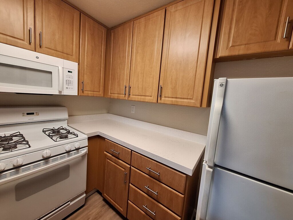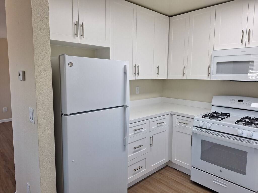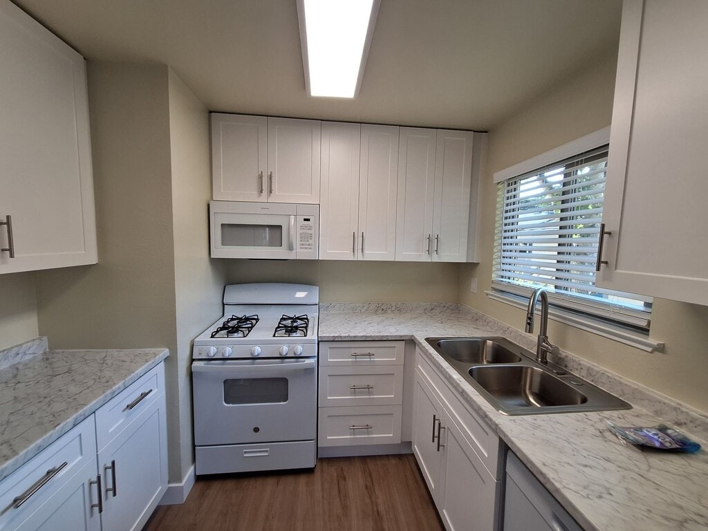 Remodeled I bedroom on the ground floor. Kitchen is full of storage, gas range, refrigerator, built in microwave and dishwasher and beautiful white quartz counter tops. New vinyl plank flooring, windows and blinds. Residents are responsible for the utilities. Renters Insurance is required.