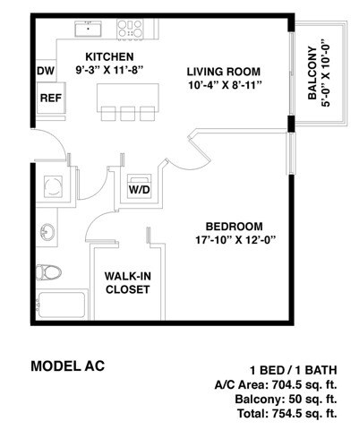 Studio, 1 Bath, 605 sq ftModel Gallery