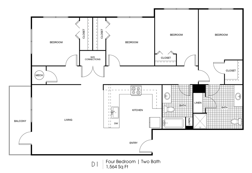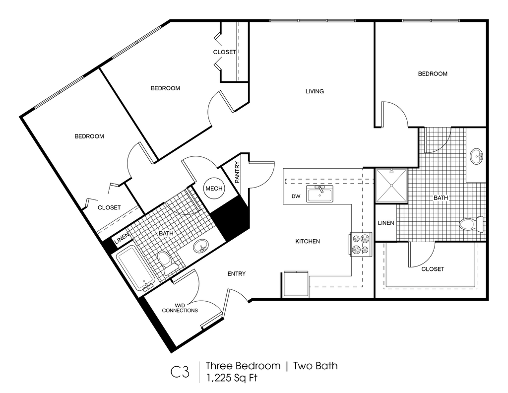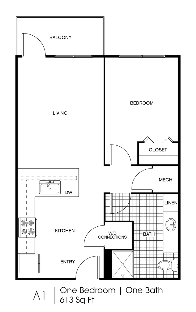 Apartment Model: A1-50From $1,2551 Bedroom, 1 Bath, 613 sq ftAvailable April 1, 2026![]()