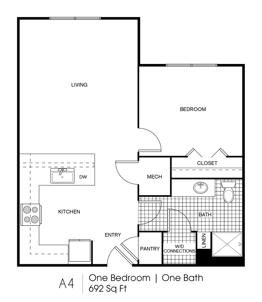 A3-60 - Floorplan 1 Apartment Unit: 458Apartment Model: A3-60$1,405Studio, 1 Bath, 630 sq ftAvailable April 1, 20261 Bedroom