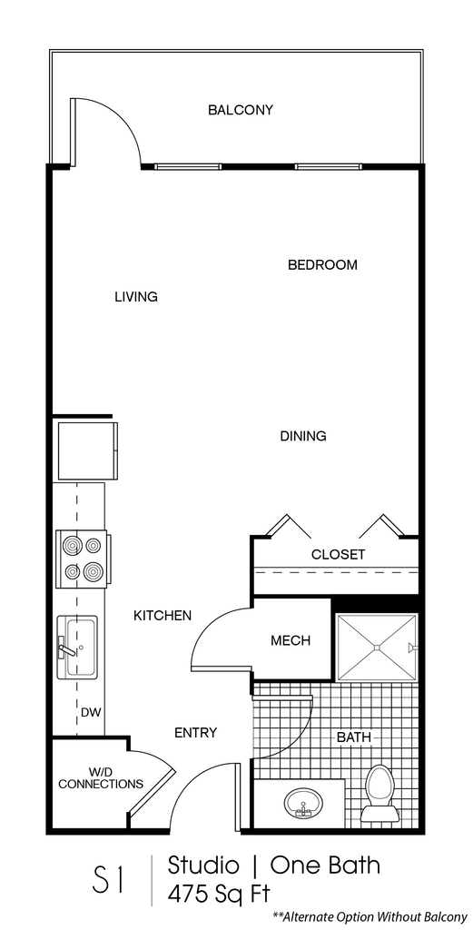 Apartment Model: S1-30From $702Studio, 1 Bath, 475 sq ftAvailable April 1, 2026![]()