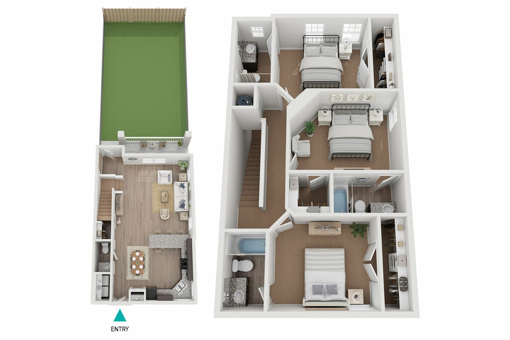 Apartment Model: Amethyst Townhome (C1 Fence)From $2,2353 Bedroom, 3.5 Bath, 1802 sq ftUnavailable![]() - Amethyst Townhome (C1 Fence) - Floorplan 1