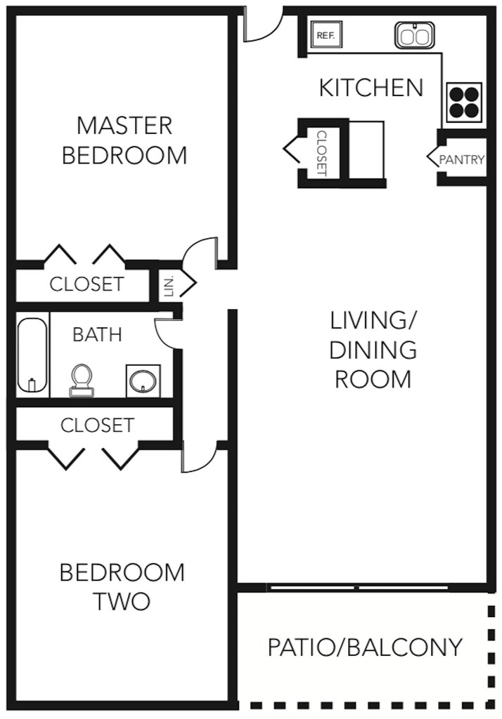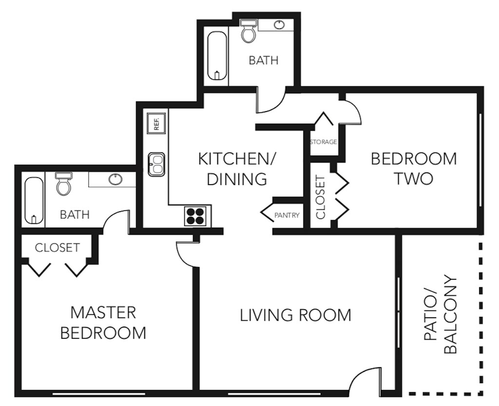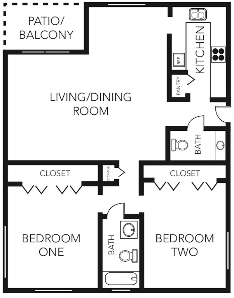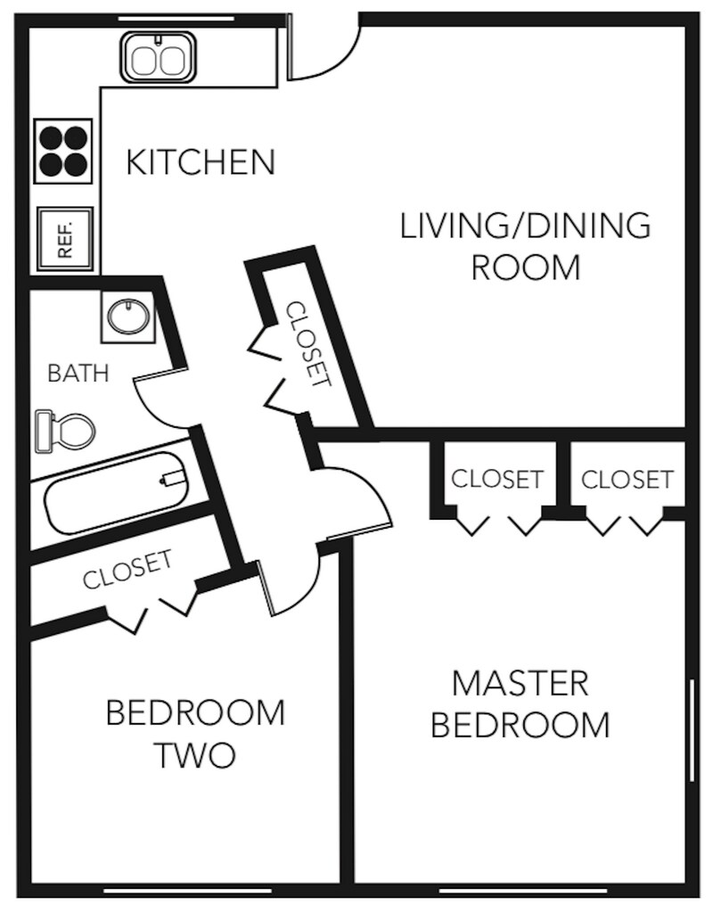 2 Beds, 1 Bath, 1115 sq ftLargest 2 BedroomThis is the largest 2 Bedroom at this PropertyModel Gallery
