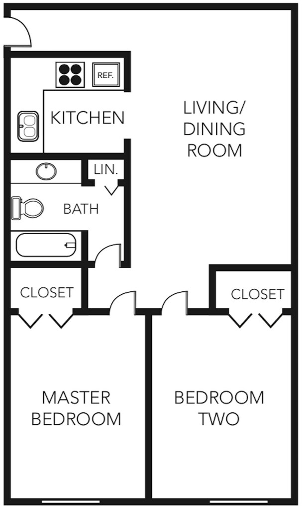 2 Beds, 1 Bath, 623-670 sq ftModel Gallery