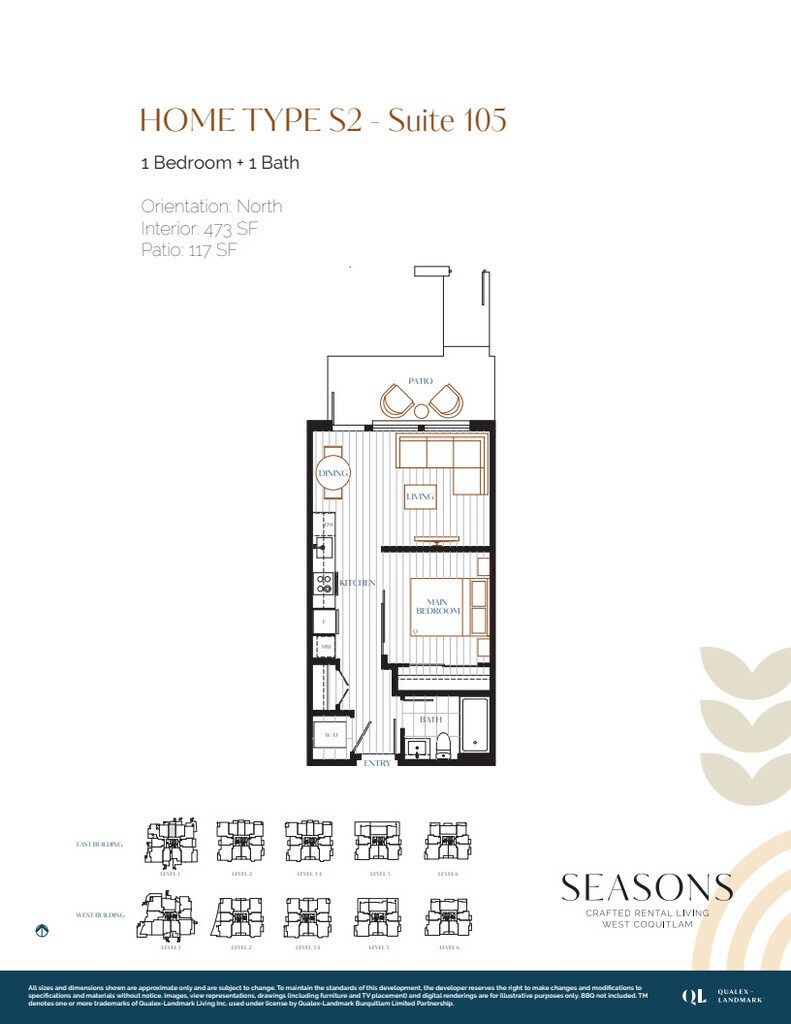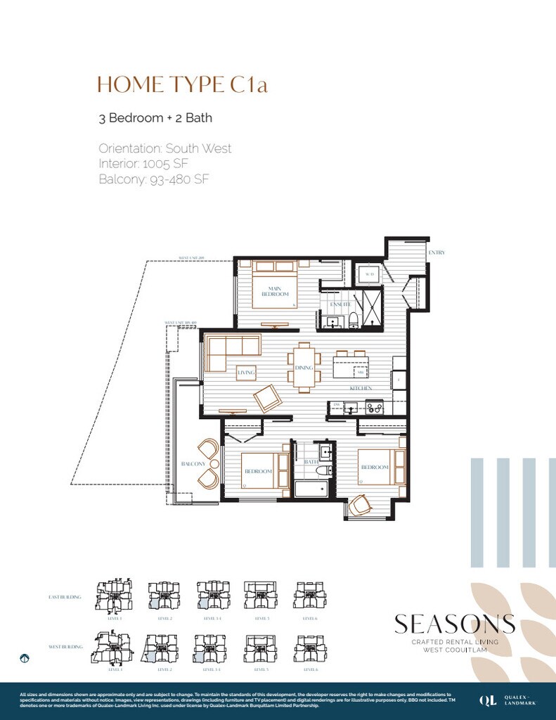 Premier West Coquitlam rental living by Qualex-Landmark™. Living at Seasons puts you at the centre of it all. Live right by Burquitlam SkyTrain Station, Safeway and the new Bettie Allard YMCA. Just a 10-minute walk to Mountain View Park, with courts for pickleball, a lacrosse field and picnic tables, and a 5-minute drive to SFU. Enjoy Resident-Only Amenities, including a grand courtyard, a cozy lounge, co-working space, a smart gym featuring Peloton, a live-in Resident Manager, and much more, including: • Pet-friendly homes + community – 40-lb weight limit. • WIFI-enabled amenity spaces • EV charging in a secure underground parkade. • Backed by Qualex-Landmark™'s three decades of experience building boutique homes • Professional Property Management team Our homes offer a spacious layout, and a large living space that extends to an outdoor balcony. Enjoy a fully-equipped kitchen with Italian-made Fulgor Milano stainless steel fridge and high-efficiency cooktop. The microwave and dishwasher are fully integrated, delivering a seamless cooking experience. In the bedroom, there are blackout shades installed, and the bathroom offers both a shower and bathtub. In-suite laundry offers you convenience. Heating and cooling in all homes*. Secure your home today: Connect us to book an appointment and explore in person. *Images, view representations, drawings and digital renderings are for illustrative purposes only. This is not an offering for sale. Ask team for details on cooling. E. & O.E. TM denotes one or more trademarks of Qualex-Landmark Living Inc. used under license by Qualex Landmark Burquitlam Limited Partnership.