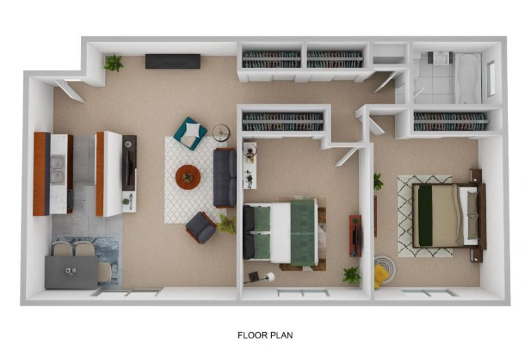 2 Beds, 1 Bath, 860 sq ftPlus FeesAvailable NowModel Gallery