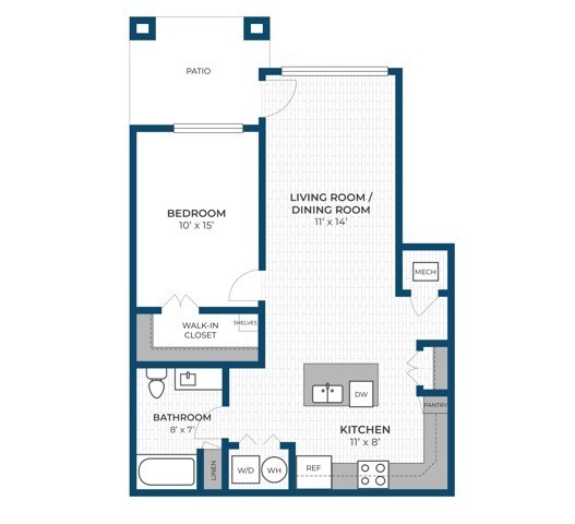 1E - Floorplan 2 Apartment Unit: J 1754-209Apartment Model: 1EFrom $1,9651 Bedroom, 1 Bath, 886 sq ftAvailable November 22, 2025Floorplan 1B