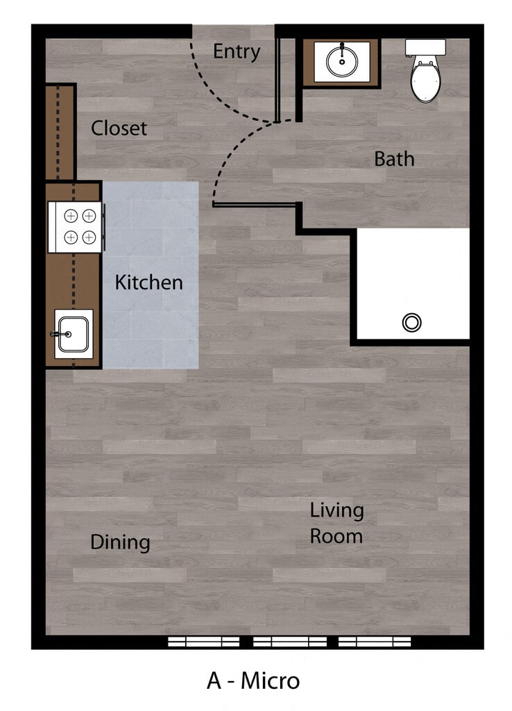 Studio, 1 Bath, 183-531 sq ftAvailable NowModel Gallery