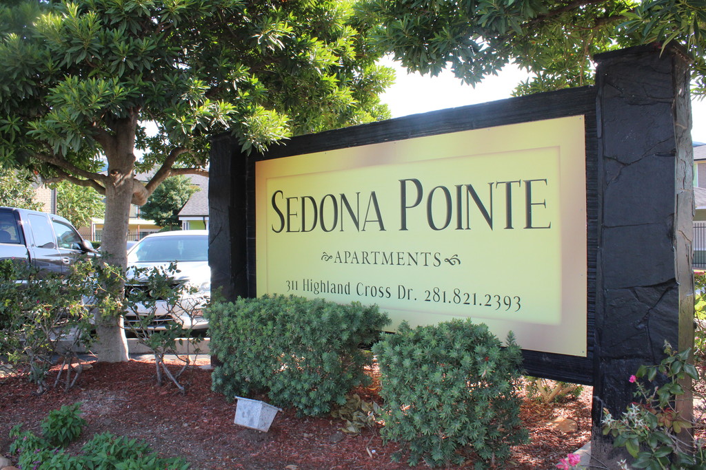 Affordable Highland Cross Apartments Sedona Pointe Apartments offers incredible options in Studio, 1 and 2 bedroom apartments living within the Highland Cross area. The combination of our fair prices, beautiful community, generous amenities, and professional service brings our residents together like no other complex! We are located just south of the Woodlands, and minutes from Bush Intercontinental Airport. Our Studio, 1, and 2 bedroom units feature private patio/balcony space, two-tone paint, granite countertops, kitchen backsplashes, faux wood flooring, and modern appliances. These individual units can fit a variety of living preferences and are geared towards comfort and space. Our residents also enjoy complimentary community amenities such as our sparkling swimming pool, playground area, business center, guest parking, gated access, laundry facilities. Visit today and schedule your personal tour with our friendly leasing staff and find out why Sedona Pointe is among the best of the Highland Cross Apartments! You can give us a call at and we'll get started with you right away!