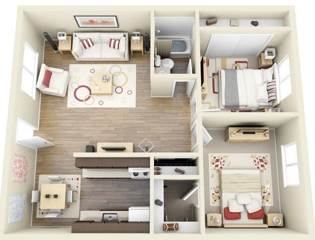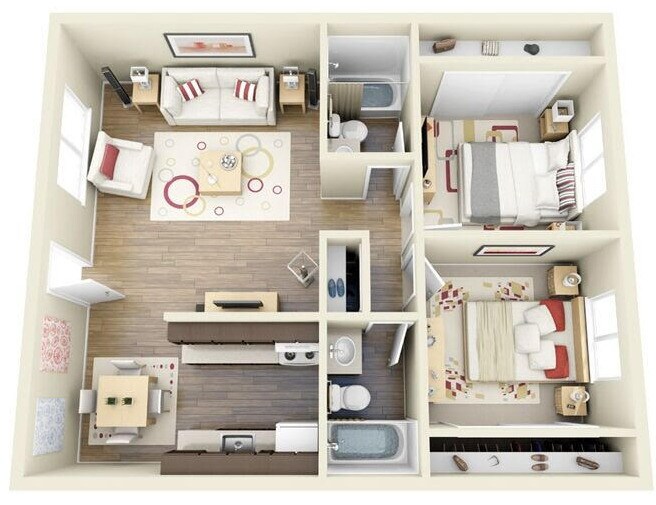 Apartment Model: 2 Beds TWO BathsFrom $1,3192 Bedroom, 2 Bath, 866 sq ftAvailable NowFloorplansPhotos![]()