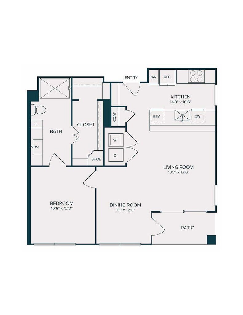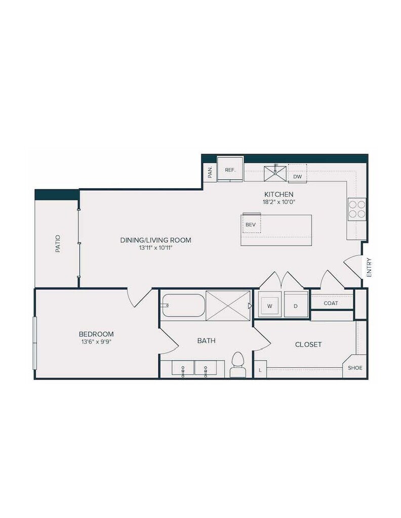 A10 - Floorplan 1 Apartment Unit: 515Apartment Model: A10$3,3491 Bedroom, 1 Bath, 798 sq ftAvailable November 13, 2025Floorplan A21