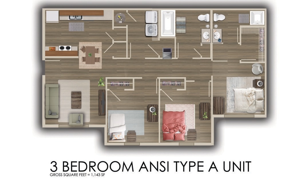 Apartment Model: 3 BedroomCall For Rates3 Bedroom, 2 Bath, 1143 sq ftUnavailable![]()