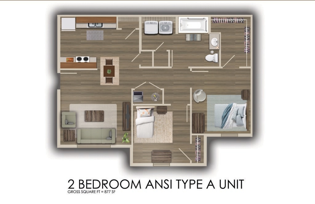 2 Beds, 1 Bath, 877 sq ftAvailable NowModel Gallery
