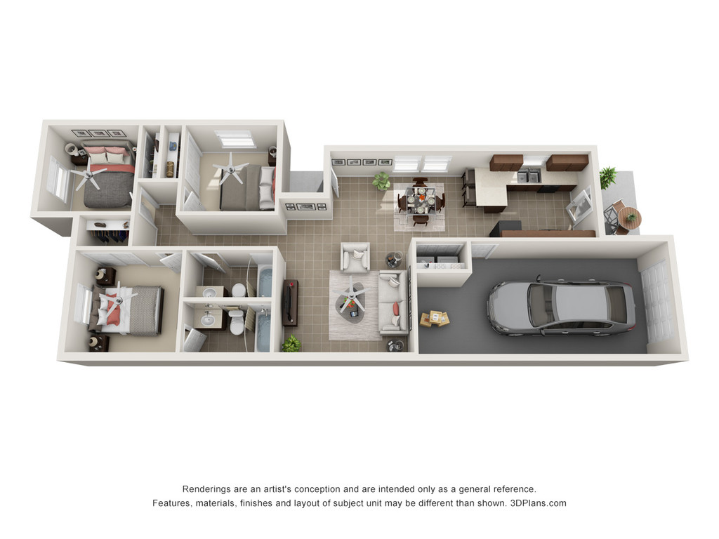 3 Beds, 2 Baths, 1048 sq ftModel Gallery