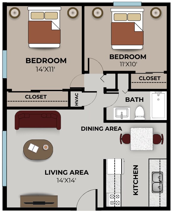 Apartment Model: 2 Bedroom, 1 BathFrom $7952 Bedroom, 1 Bath, 750 sq ftAvailable Now![]()