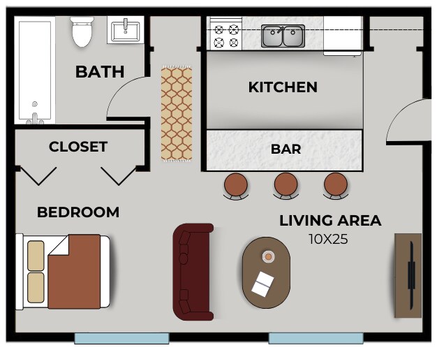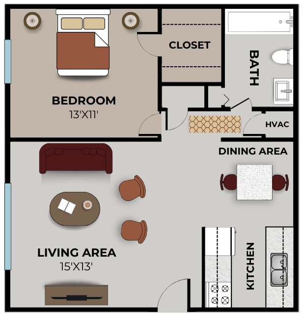 Apartment Model: StudioFrom $5651 Bedroom, 1 Bath, 575 sq ftUnavailable![]()