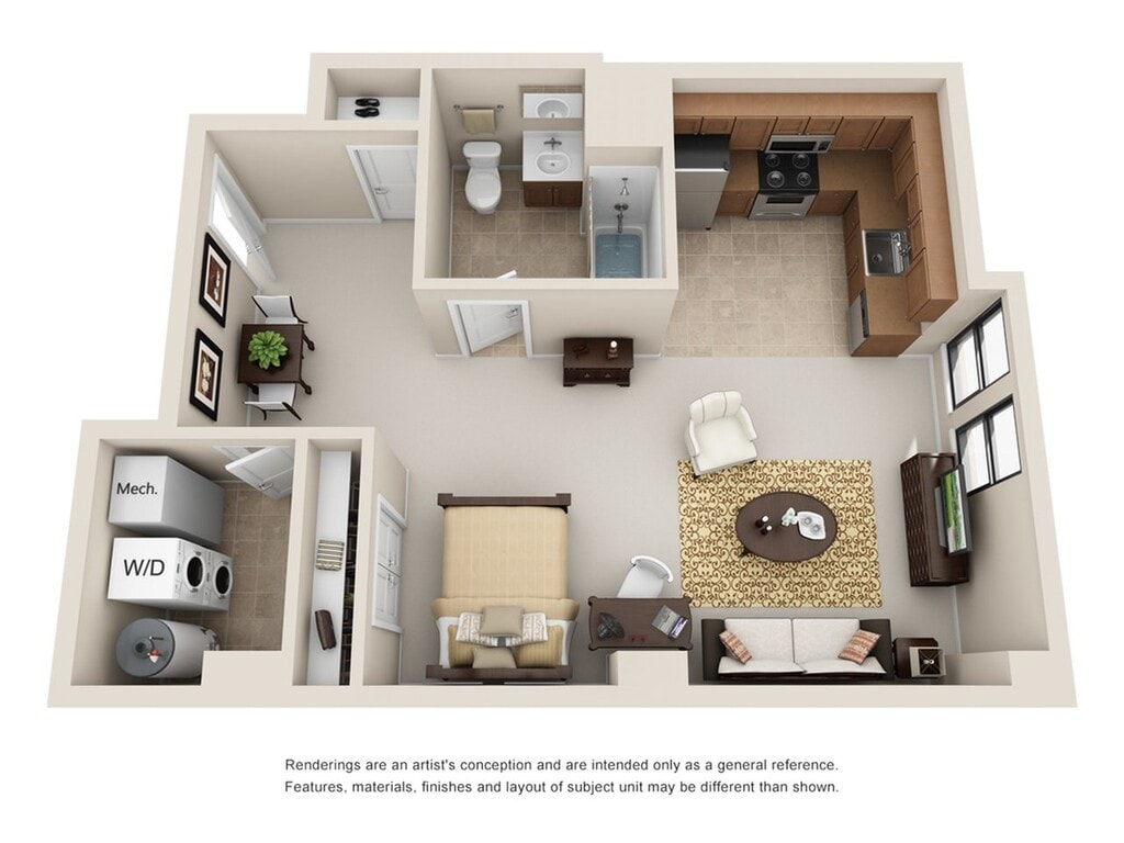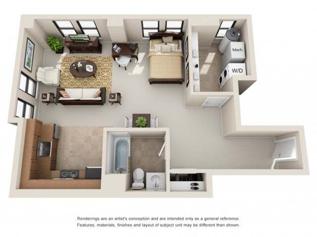 Studio, 1 Bath, 647 sq ftLargest StudioThis is the largest Studio at this PropertyModel Gallery
