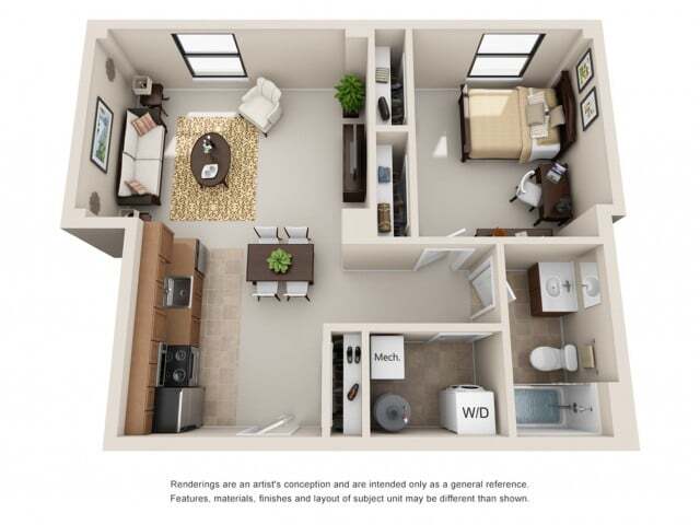 Apartment Model: The OakFrom $1,195Studio, 1 Bath, 603 sq ftAvailable August 13, 2026FloorplansPhotos![]()