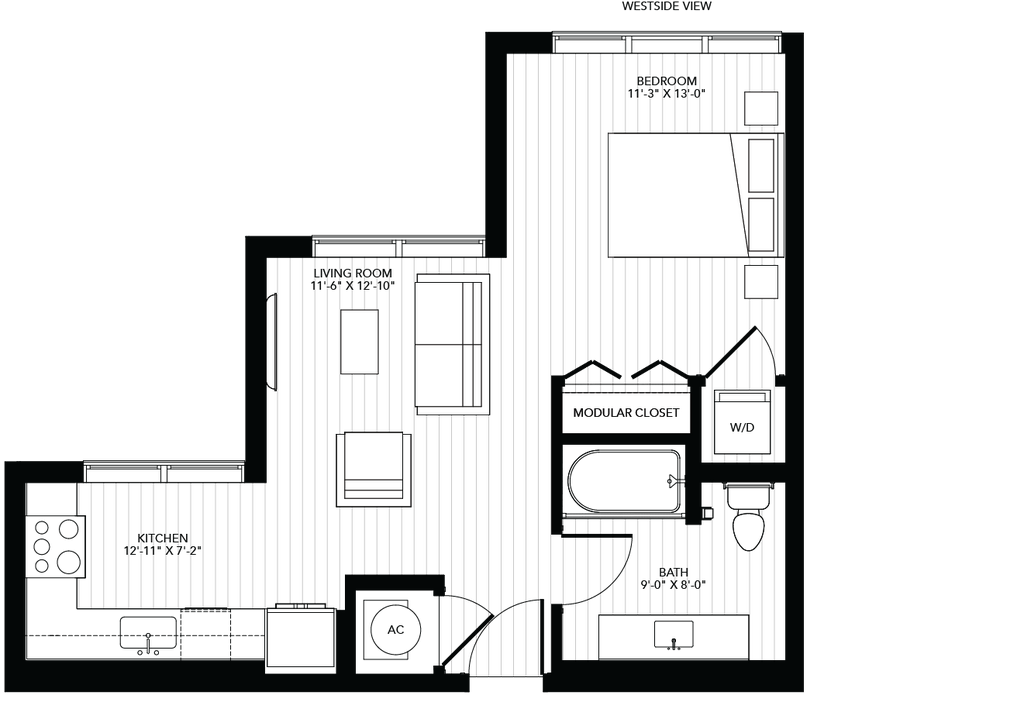 Studio, 1 Bath, 504 sq ftAvailable NowModel Gallery