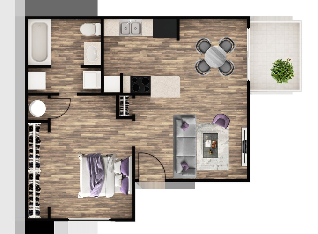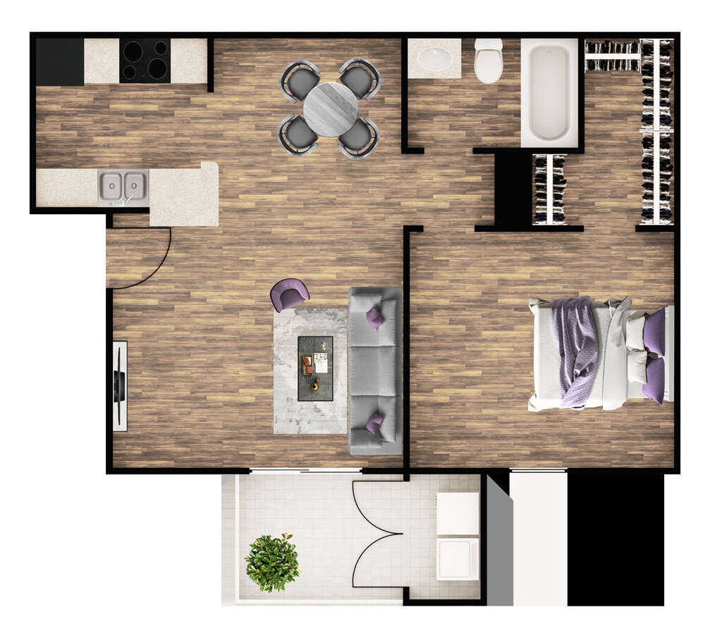 1 Bed, 1 Bath, 625 sq ftAvailable NowModel Gallery