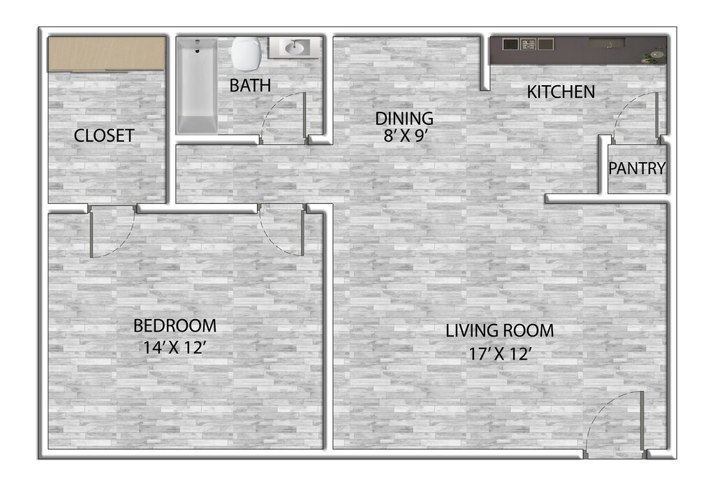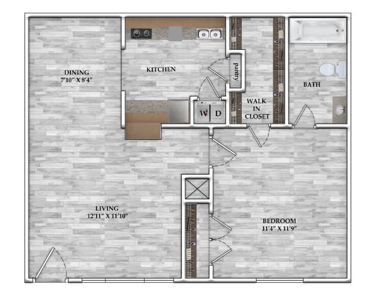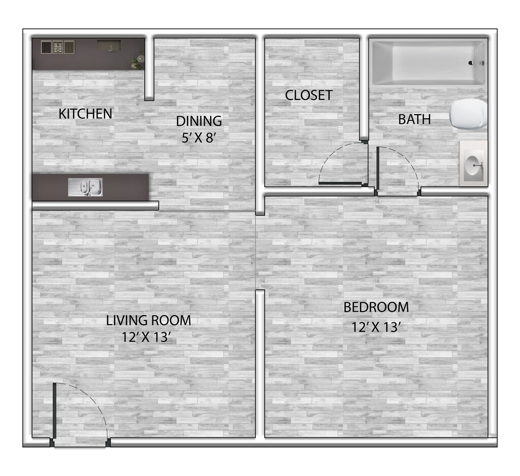 1 Bed, 1 Bath, 531 sq ftModel Gallery