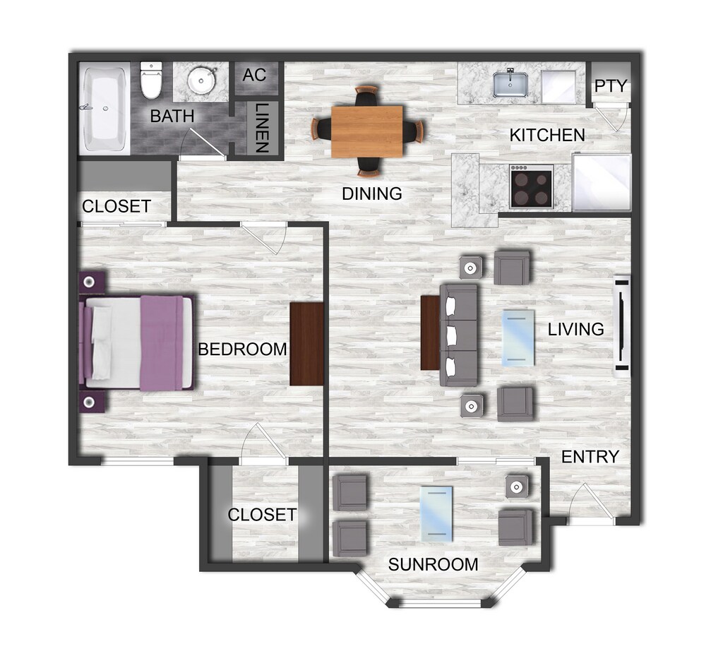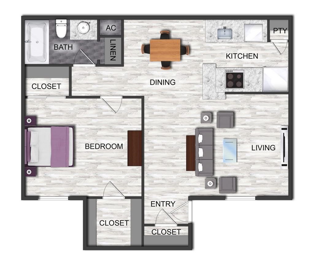 1 Bed, 1 Bath, 644 sq ftAvailable NowModel Gallery