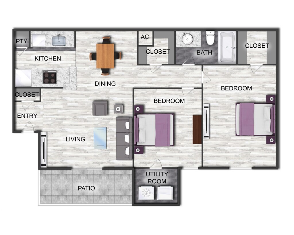 Apartment Model: 2 Bedroom 2 Bathroom2 Bedroom, 2 Bath, 889 sq ftUnavailable2 Bedroom 2 Bathroom - Floorplan 1 2 Bedroom 2 Bathroom