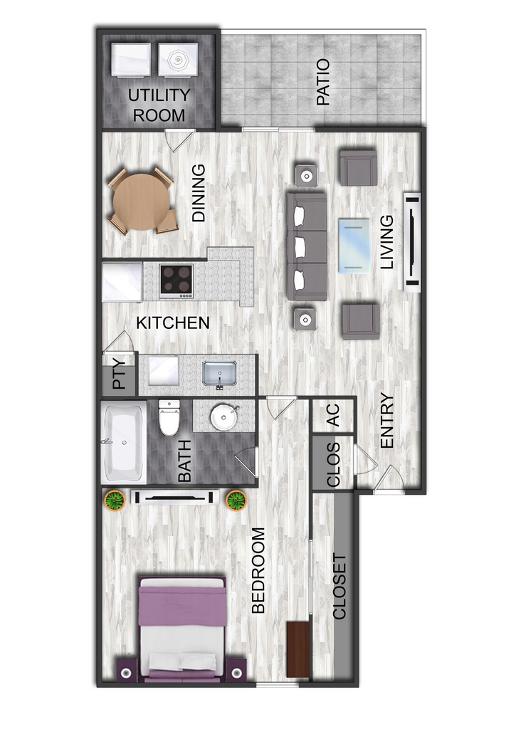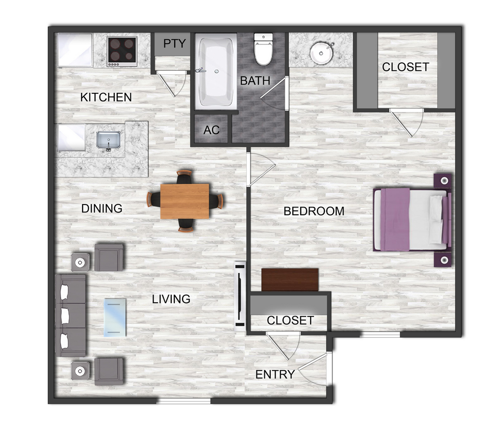 1 Bed, 1 Bath, 711 sq ftAvailable NowModel Gallery