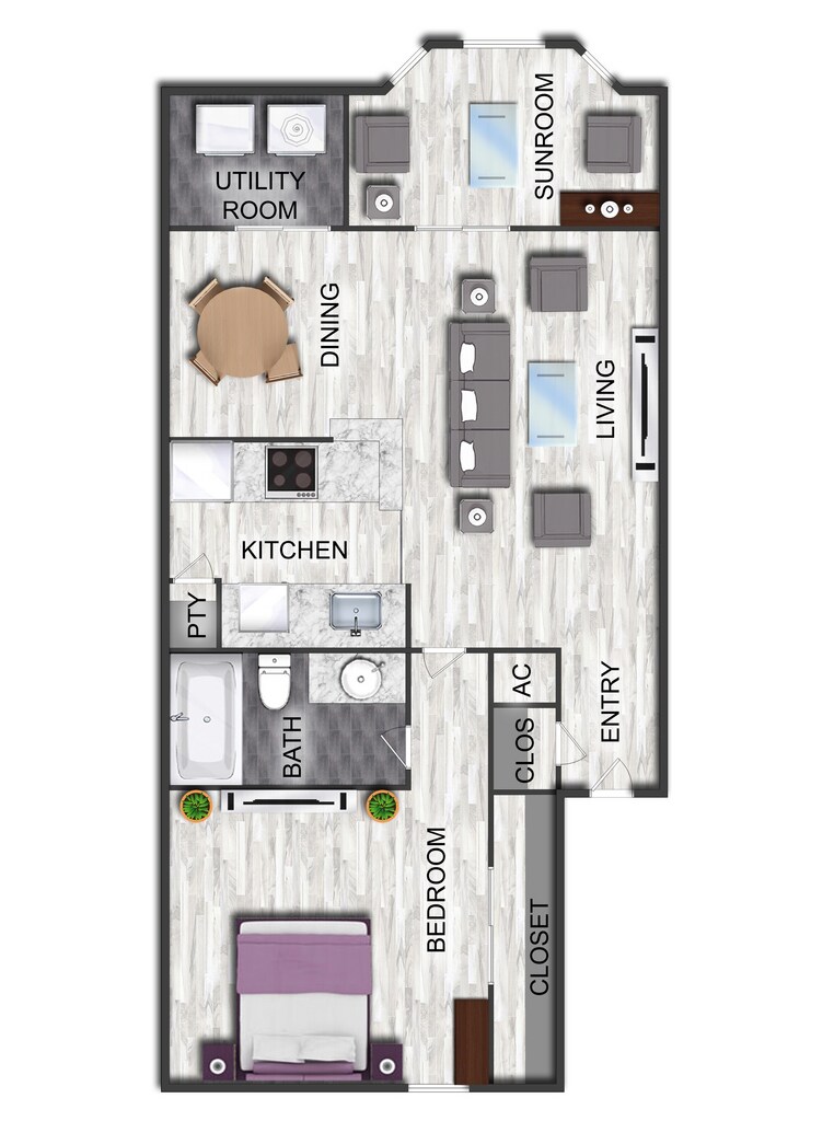 1 Bed, 1 Bath, 672-772 sq ftLargest 1 BedroomThis is the largest 1 Bedroom at this PropertyModel Gallery