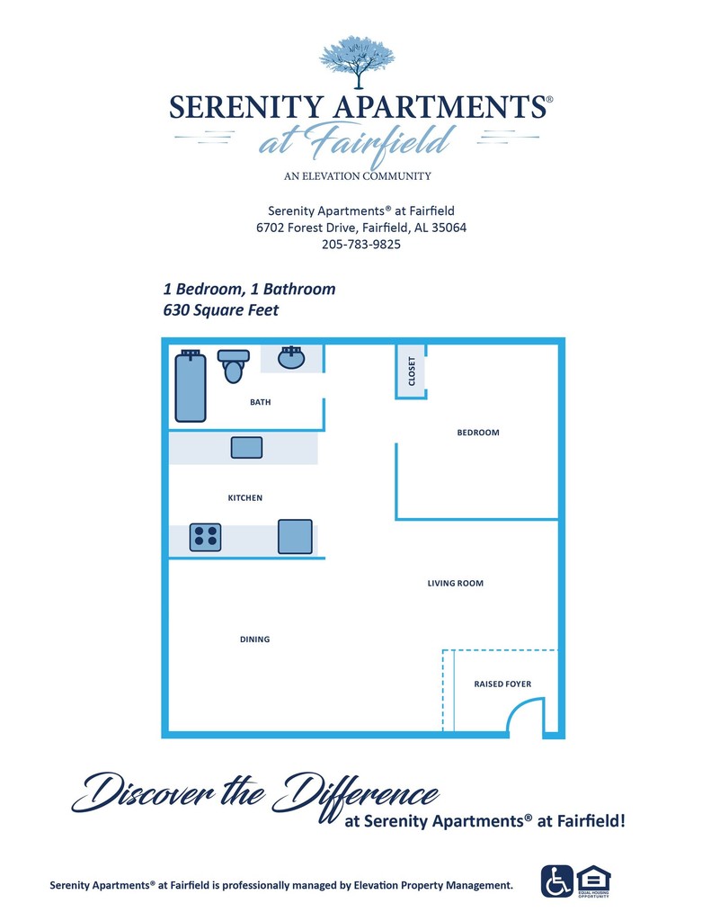 Perfectly nestled in the residential community of Forest Hills, Serenity Apartments at Fairfield offers spacious apartment homes with lush greens and modern interiors. In addition to renovated baths and kitchens with modern appliances, we offer ample closet space and a short drive to all your shopping needs while being just 15 minutes from bustling downtown Birmingham. Come and "Discover the Difference" at Serenity!