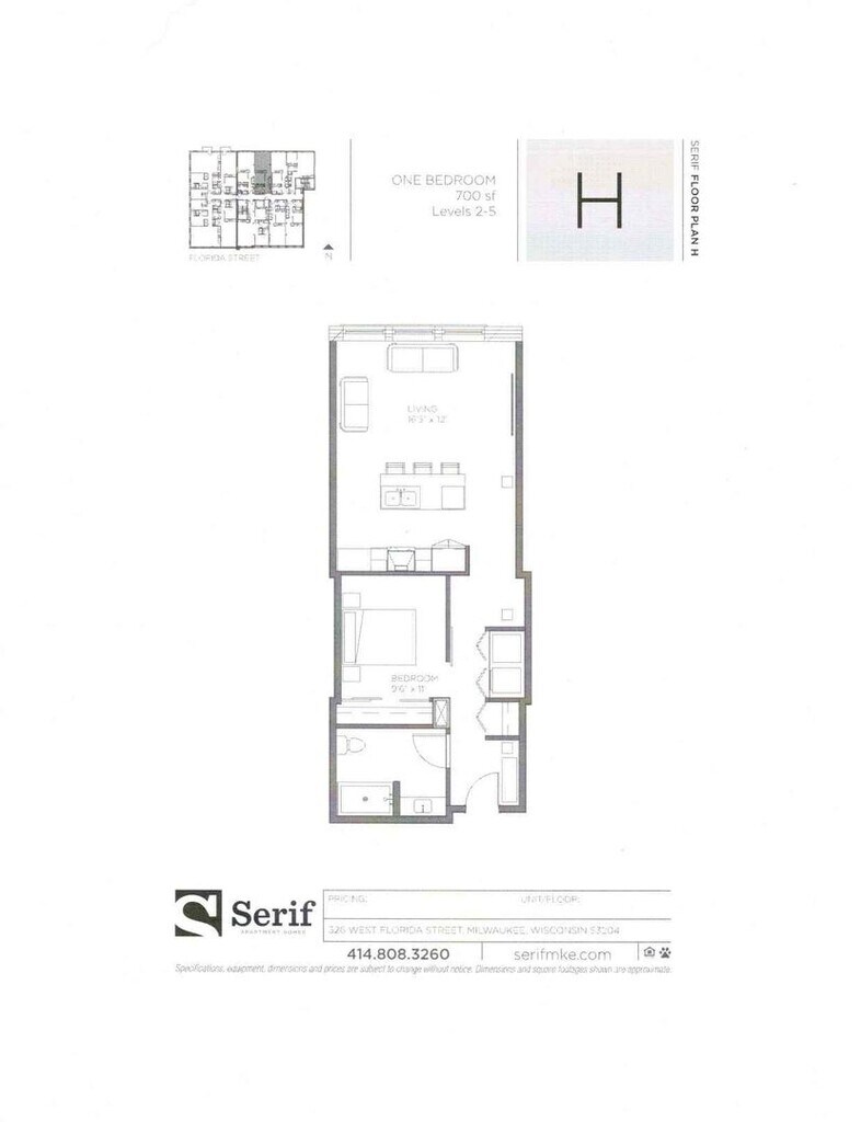 Serif MKE offers 1 Bedroom apartments having 700 sqft. Here is the current pricing and availability: