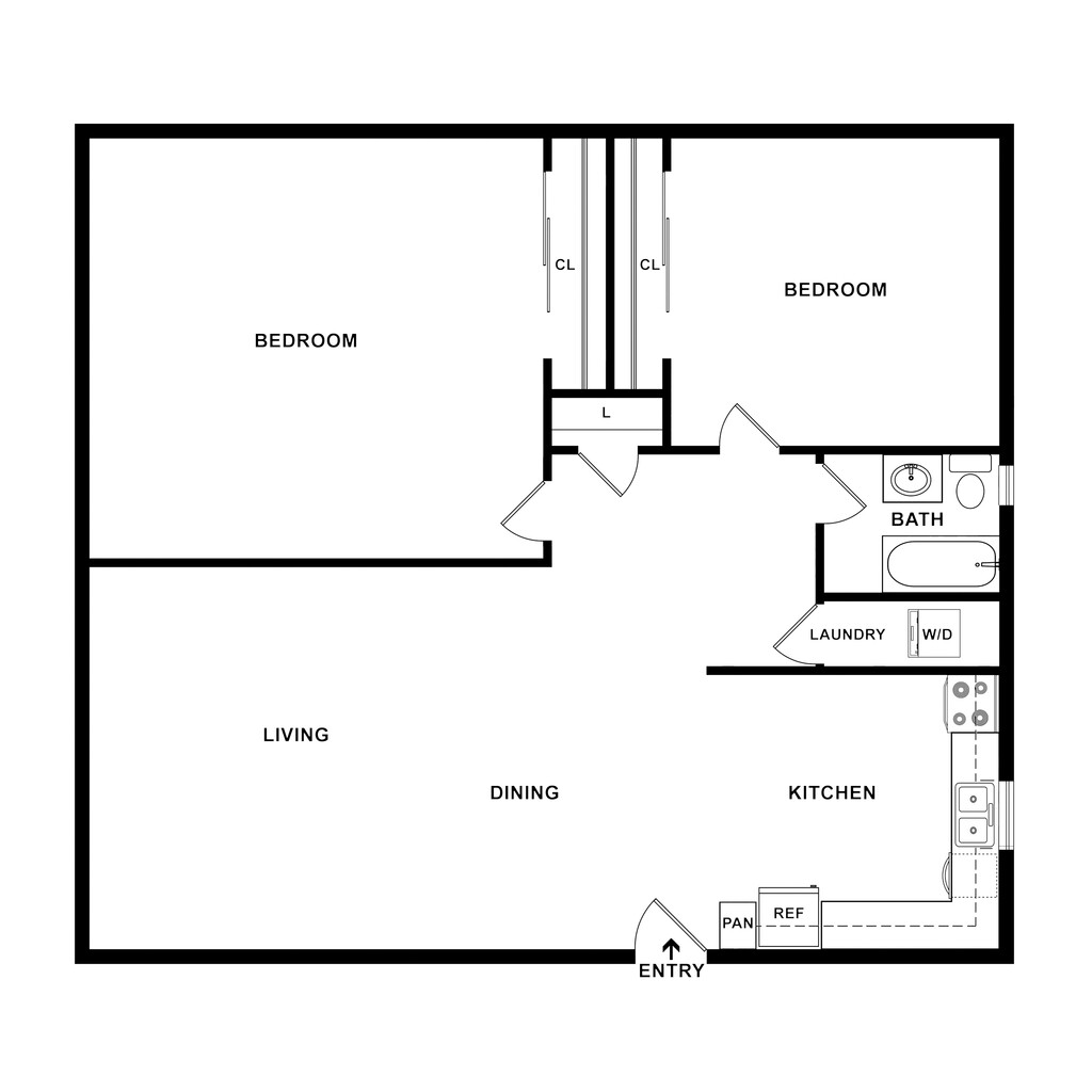 2 Beds, 1 Bath, 800 sq ftAvailable NowModel Gallery