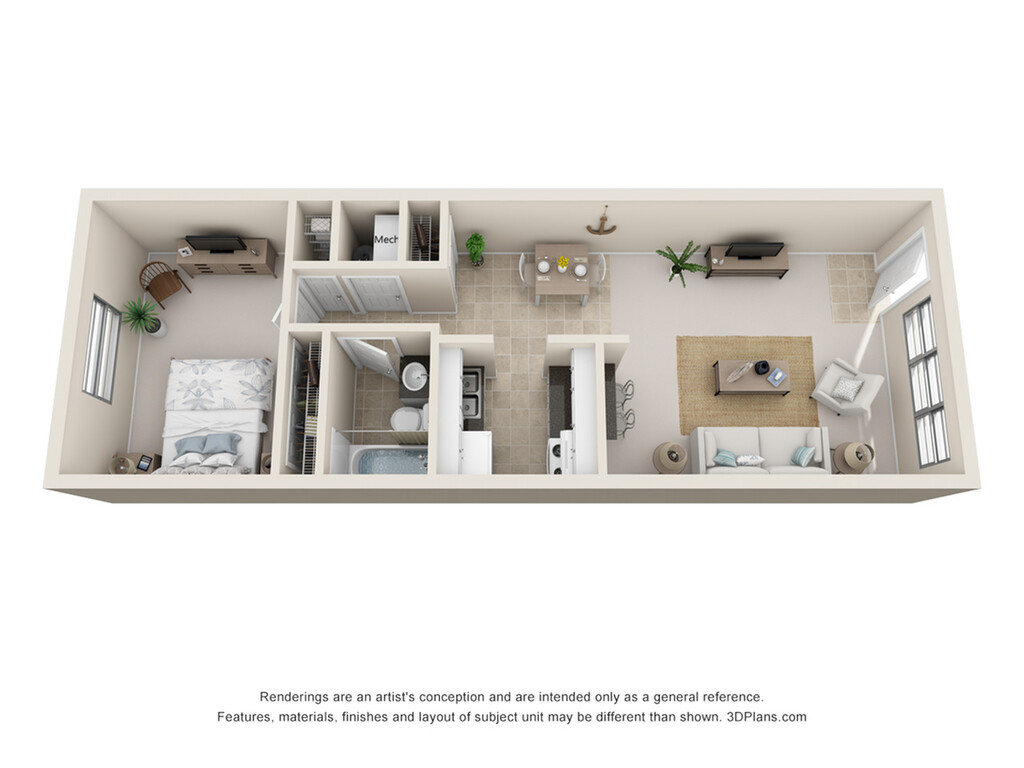 1 Bed, 1 Bath, 580 sq ftAvailable NowModel Gallery