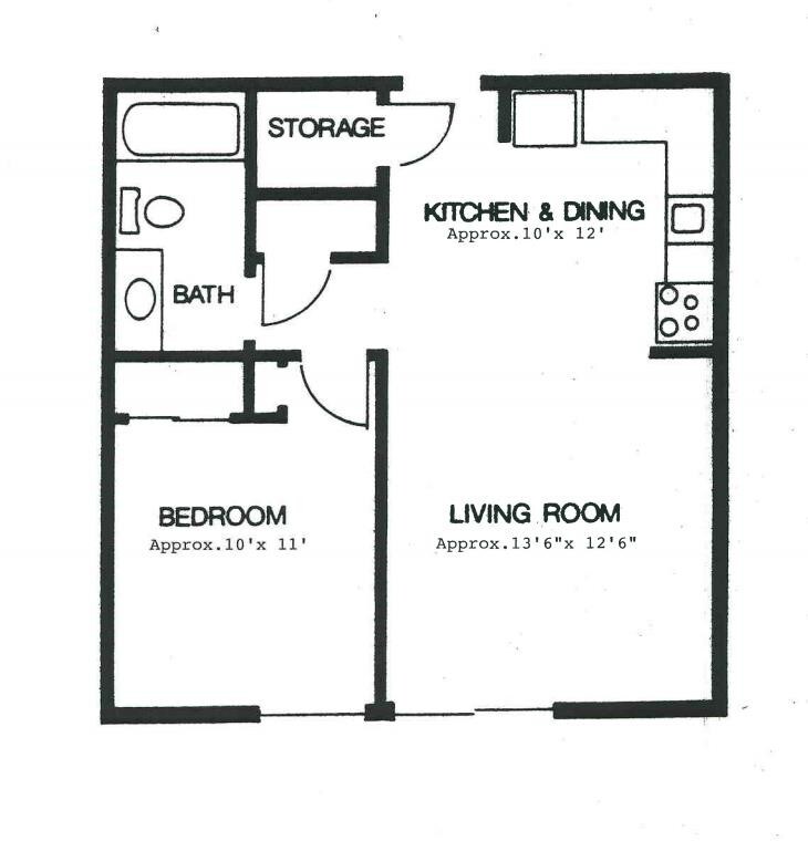 1 Bed, 1 bath - Floorplan 1 2 Bedrooms