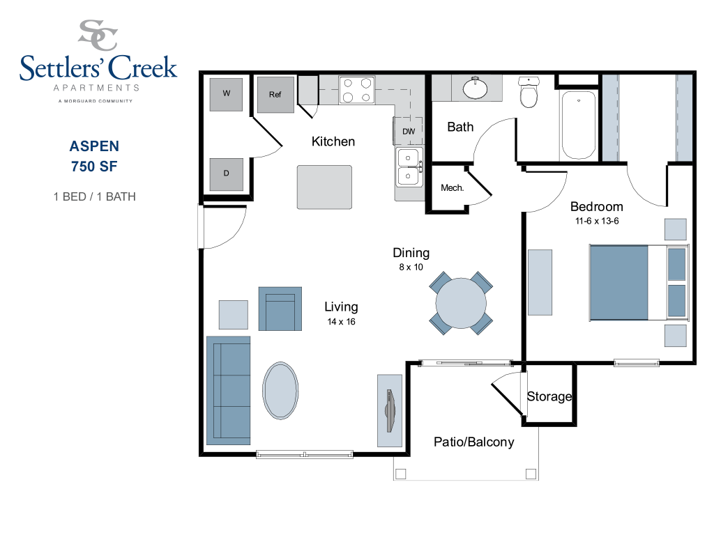 Apartment Model: AspenFrom $1,5951 Bedroom, 1 Bath, 750 sq ftAvailable Now![]()