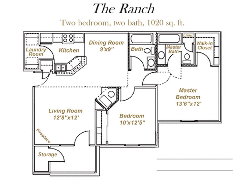 Apartment Model: The RanchFrom $1,2852 Bedroom, 2 Bath, 1020 sq ftAvailable Now![]()