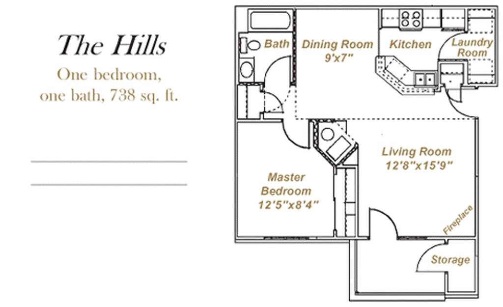 Apartment Model: The HillsFrom $1,2201 Bedroom, 1 Bath, 738 sq ftAvailable Now![]()