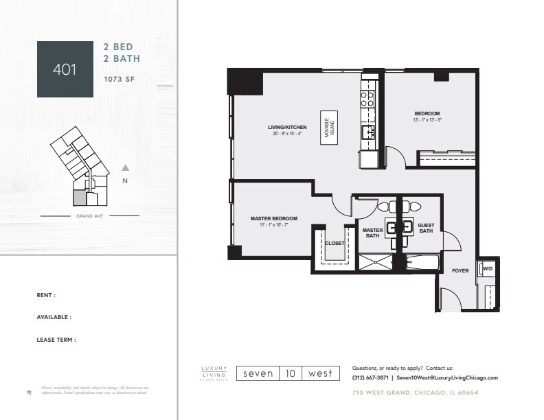 Apartment Model: 401 (RELET)$3,3702 Bedroom, 2 Bath, 1073 sq ftAvailable January 22, 2026![]()