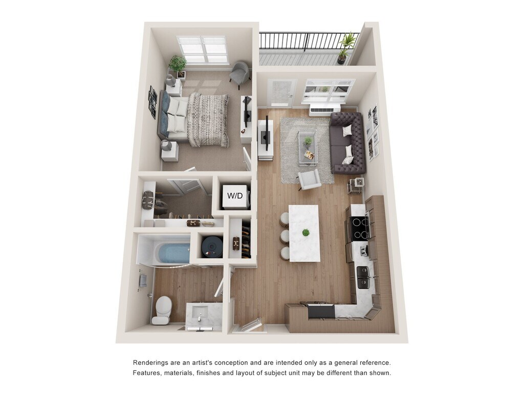 1 Bed, 1 Bath, 629 sq ftModel Gallery
