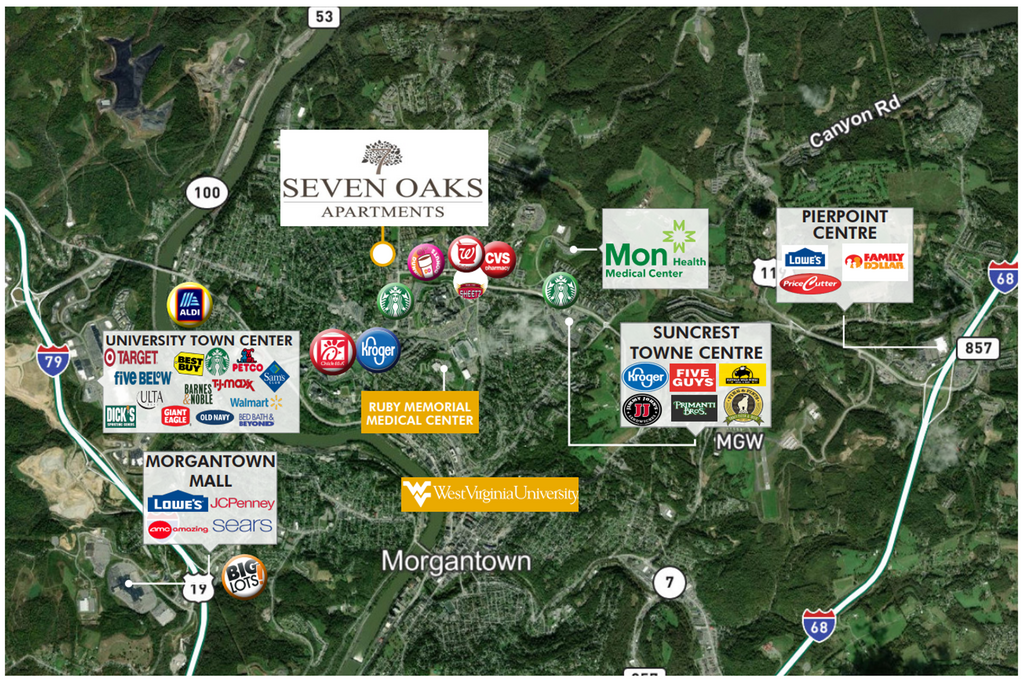 Seven Oaks Apartments is located in the 26505 Zip code of Morgantown, WV.