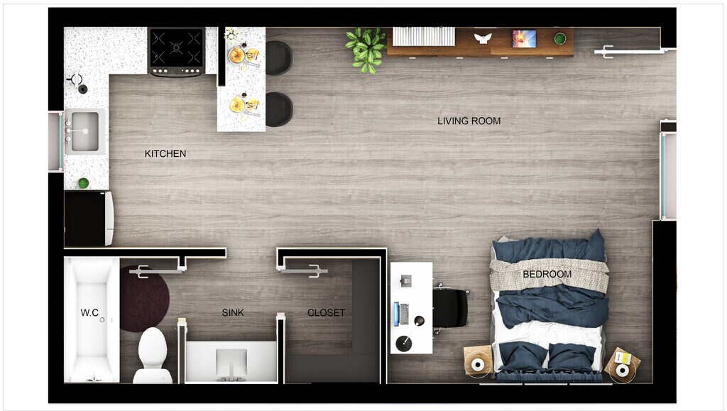 Studio, 1 Bath, 470 sq ftAvailable NowModel Gallery