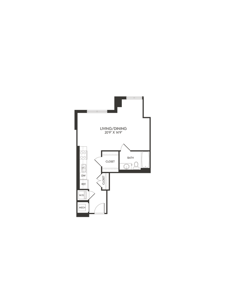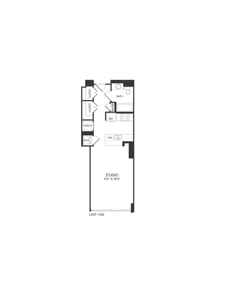Apartment Model: 100-S2Call For RatesStudio, 1 Bath, 533 sq ftAvailable Now100-S2 - Floorplan 1 100-S1